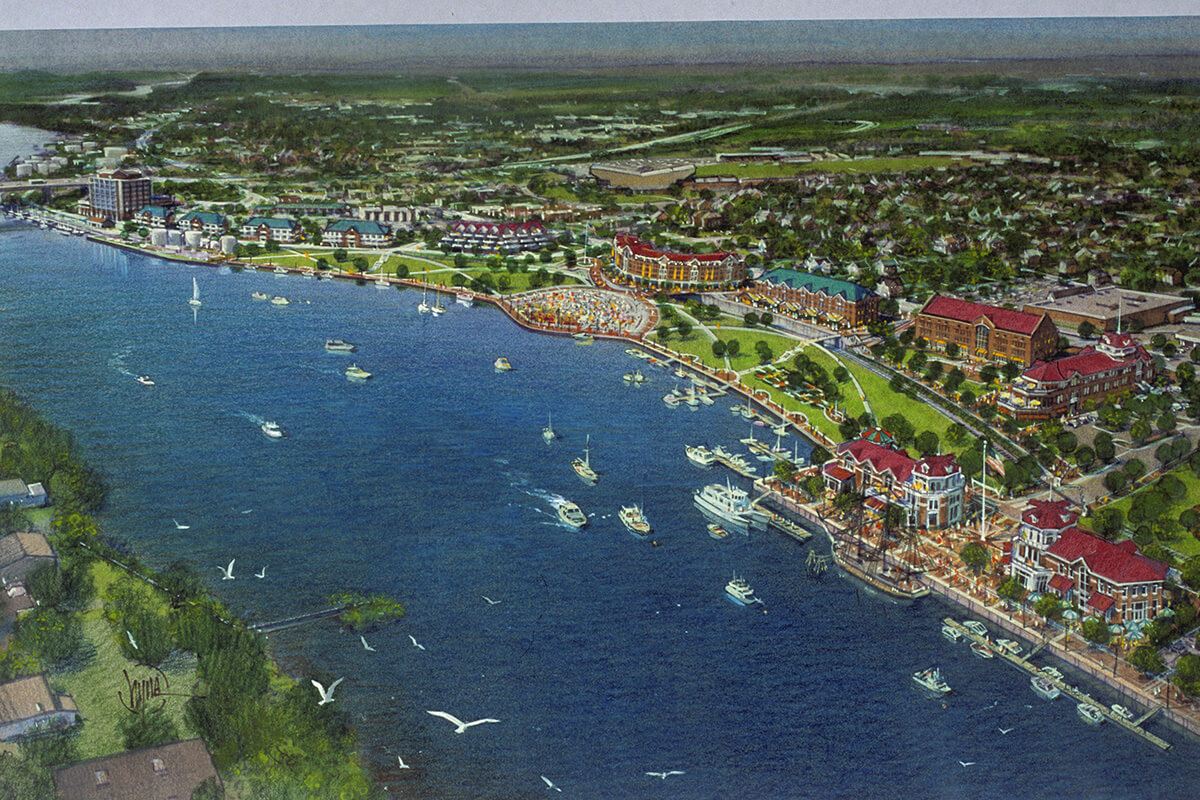 Allison Platt & Associates was the lead designer on a team headed by Hunter Interests to assist the City of Bangor with the Penobscot Riverfront Development Plan. This site is a former railroad yard just a few miles from the center of the city. The plan includes a mix of uses designed to maximize the economic potential of the 25-acre, city-owned site, while creating park and recreational amenities for all to enjoy. A headquarters hotel and high-tech conference center anchor the site, while a maritime center, fast-ferry terminal, restaurants, and residential developments add to the scope of the project. Reconnecting Bangor to its rich maritime history through this riverfront plan will provide a new dimension for tourism and downtown revitalization. Beginning with client and public input, Hunter Interests tested a range of possible uses and recommended the types and square footage of uses on the site. Allison Platt & Associates then developed a site plan to these specifications